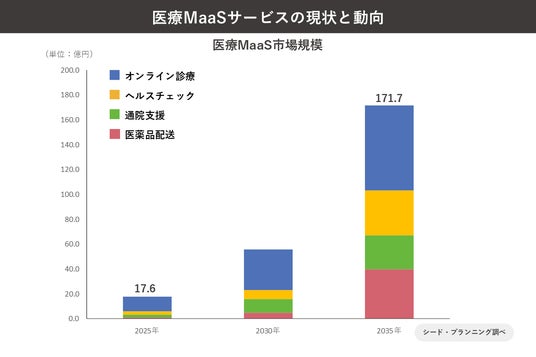 調査の結果、医療MaaSサービスの国内市場は、2025年時点で17.6億円と予測しました。