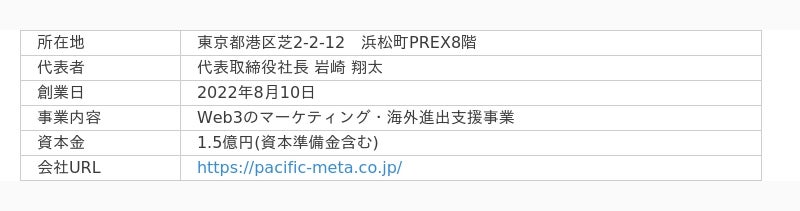 株式会社Pacific Meta(所在地:東京都港区、代表取締役:岩崎翔太、以下「Pacific Meta」)は、2024年5月22日(水)~24日(金)に、東京ビッグサイトにて開催されるビジネスイベント「第5回ブロックチェーンEXPO」においてブースを出展いたします。