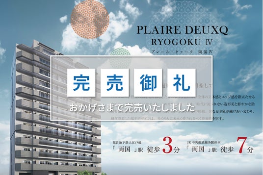 総合不動産事業を展開する株式会社 木下不動産(本社:東京都新宿区、代表取締役社長:坂本 建士)は、都市型収益用マンション「プレール・ドゥーク 両国IV」の完売(全86戸、決済完了)をお知らせします。