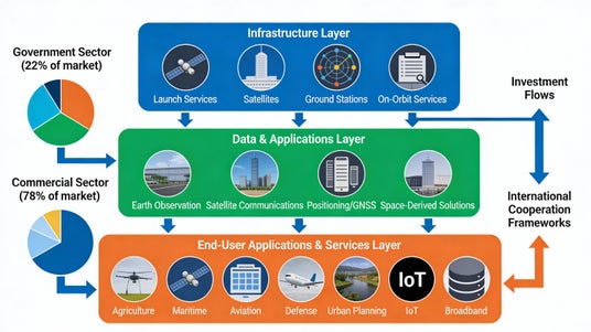● 衛星製造・打上げサービスの利益率は、新興企業との競争激化で低下が避けられない。一方、地球観測データ、GeoAIソリューション、衛星ブロードバンドサービスといった「下流アプリケーション」は、継続的な顧客接点と粘着性の高い収益を生む。