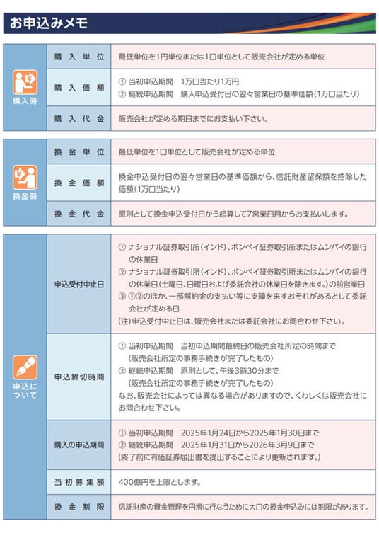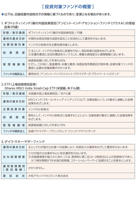 大和アセットマネジメント株式会社(代表取締役社長:小松幹太、以下「当社」)は、このたび2025年1月24日から2025年1月30日までの募集期間に多くの申込をいただきまして、2025年1月31日に「ダイワ・アンビット・インド小型株ファンド」(以下「当ファンド」)を新規設定いたしましたのでお知らせいたします。