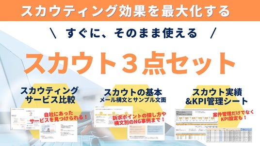 そこで、自社にあったベストな選択をできるよう、 スカウトサービス選びのポイントだけでなく、スカウトメールの書き方や数値管理シートまで、スタート~運用のすべてがわかる資料セットをご用意しました。