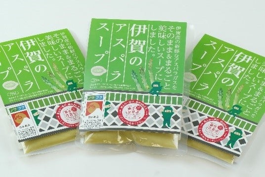 主原材料のアスパラガスは自社で生産したものを使用し、レトルト加工したアスパラスープは賞味期限が製造から1年と長く、1年を通して旬を味わえることができます。また味も牛乳をベースにし、まろやかでアスパラガスの香りが漂い、ごろっとしたアスパラガスを使用しています。家庭用として食して頂くほか、贈答品、伊賀のお土産としても利用して頂ければ幸いです。