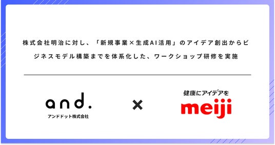 生成AI教育ソリューションを提供するアンドドット株式会社(本社:東京都渋谷区、代表取締役:茨木雄太、以下:アンドドット)はこの度、株式会社明治(本社:東京都中央区、代表取締役:八尾 文二郎、以下:明治)のイノベーション事業戦略部の皆様を対象に、「新規事業×生成AI活用」に特化したワークショップ研修を実施いたしました。