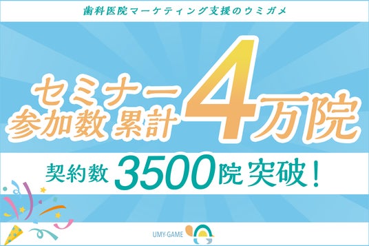 マーケティングDXサービスや歯科予約サイト「Teech(ティーチ)」を提供しているウミガメ株式会社(所在地:東京都渋谷区、代表者:松下勇介、以下:当社)は、セミナーの累計参加数40,000院、また、契約医院数が3,500院を突破したことをお知らせします。