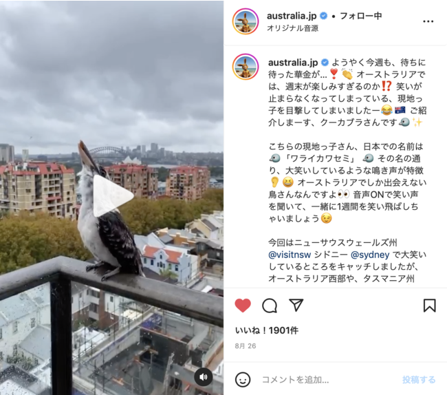 5位:愉快に笑うムードメーカー!? クーカブラ(https://www.instagram.com/reel/Cht4vZbgzhn/)