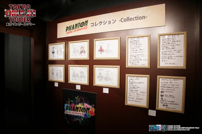 その他にもGReeeeNが書き下ろした「ONE PIECE LIVE ATTRACTION“3”『PHANTOM』」のオープニング曲「4 ever ドーン!!!!!」が展示エリア内でフルバージョンで流れ、手書きの歌詞カードも展示中。「4 ever ドーン!!!!!」のフルバージョンを聴くことができるのは、世界中で東京ワンピースタワーの「ログ ギャラリー」内だけです!!