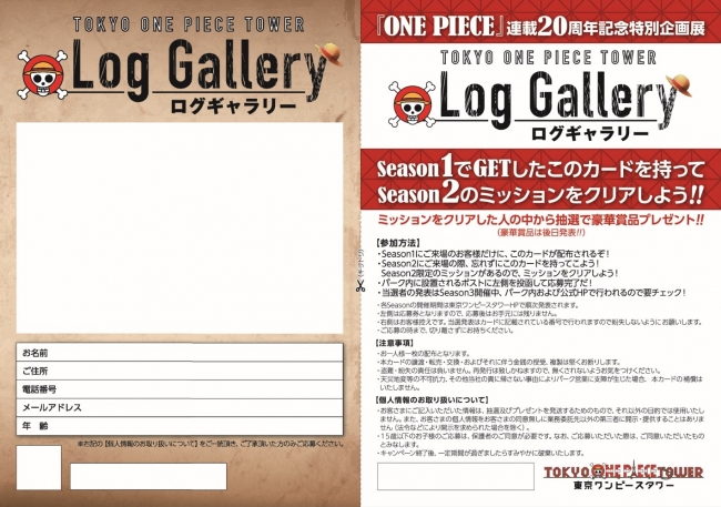 Season1の開催期間中にログ ギャラリーカードをGET!Season2の期間中にSeason1でGETしたログ ギャラリーカードを持って来園しミッションに挑戦!