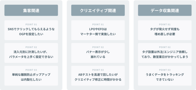 しかし、「Progate for Business」は基本的なプログラミングスキル習得に特化した教材のため、Webマーケティング業務に活かすためには応用力が必要になり「実務に直結しにくい」という課題を伺う機会も多くありました。