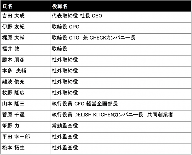 今回の取締役新任に伴い、エブリーの役員体制は以下の通りです。