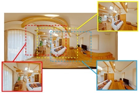 “AI画像切り出し機能” によって360°画像からAIが自動で平面画像を切り出し