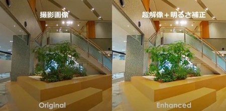 “AI 超解像 /AI 明るさ補正機能”によって ノイズを自動で除去したり、 明るさを補正