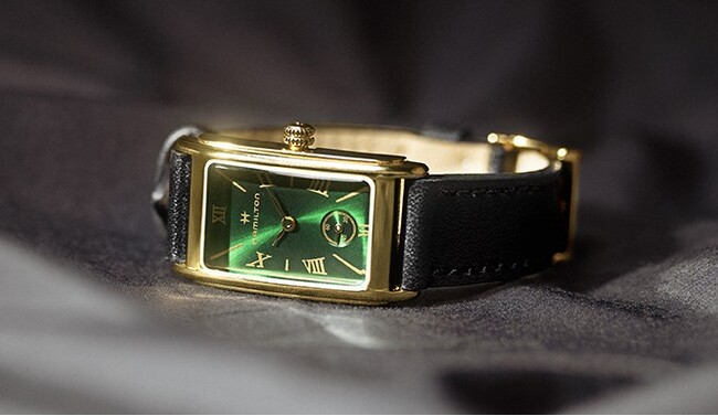 ハミルトンの「アメリカン クラシック」コレクションは、優美さと精密さを融合させ、アールデコ調のデザインを取り入れた独特のシェイプと洗練されたスタイルが特徴です。