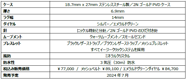 4つの新作は、フォーマルな場からビジネスシーン、ちょっとしたお出かけまで、あらゆるシーンにふさわしいスタイリングを演出します。シルバーのダイヤルにはブラックのレザーストラップが組み合わされ、シックで汎用性の高いドレスウォッチとなっています。 シルバーのダイヤルにブラウンのレザーストラップの組み合わせは、日常のさまざまなシーンで上品な雰囲気を演出します。 また、メッシュのステンレススチール製ブレスレットとシルバーのダイヤルの組み合わせは、モノトーンで洗練された印象を与え、この由緒あるクラシックモデルに現代的なセンスをもたらしています。