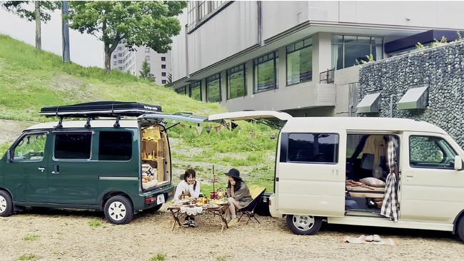 軽バン2台をお洒落にかわいらしくデコレーションし、ウッドチップサイトをベースにNASPAのアクティビティを存分に楽しんでいただいた二人のコラボキャンプ動画はYouTubeのホテル公式チャンネル、もりふうみチャンネル、chomocampの3つのチャンネルで3本同日公開予定です。