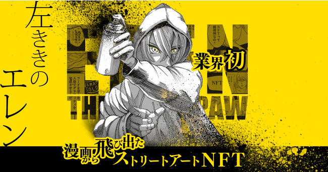 本企画は、国内のビジネスパーソンから多くの支持を得ている漫画『左ききのエレン』の登場人物である山岸エレンが描いたストリートアート2点を、現実の世界でNFTアートとしてオークション販売するものです。さらに、落札者はスピンオフ漫画に出演できる特典もあり、漫画の世界と現実の世界をシンクロさせた新しい取り組みになります。