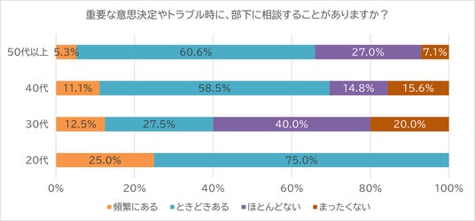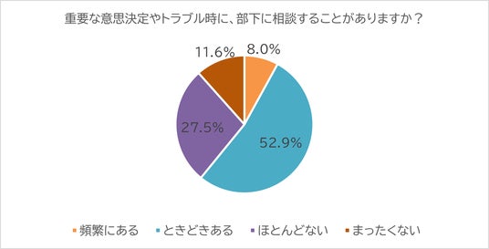 重要な意思決定やトラブル時に、部下に相談する上司は約6割
