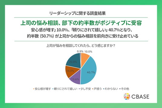 上司の悩み相談に対して、部下の約半数がポジティブに受け止め