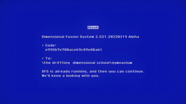 そして画面上のマウスカーソルがOKをクリックすると「次元情報を収集しています」というローディングが入りブルースクリーンから暗転。