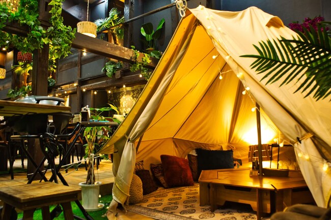 都心でグランピング体験が出来る「グランピングテント席」は予約必須の人気席です。