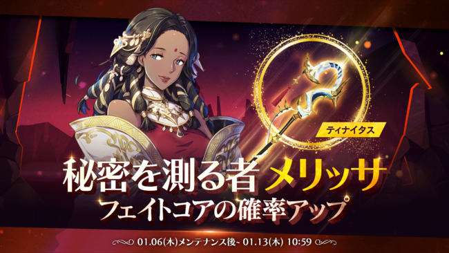 LINE Games Corporationは、現在サービス中のAndroid/iOS向けゲームアプリ『EXOS HEROES(エグゾスヒーローズ)』において、2022年1月6日(木)より、新規フェイトコア「秘密を測る者_メリッサ」と専用装備が登場しましたのでお知らせいたします。また、新年を記念した「新年7日間のプレゼント」イベントが開催中ですので併せてお知らせいたします。