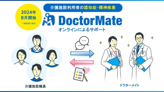 介護事業所向けに医療ソリューションを提供するドクターメイト株式会社(代表取締役・医師 青柳 直樹)は、8月より介護施設利用者の認知症ケアに対するオンライン精神科相談サービスを一部地域より提供開始したことをお知らせします。