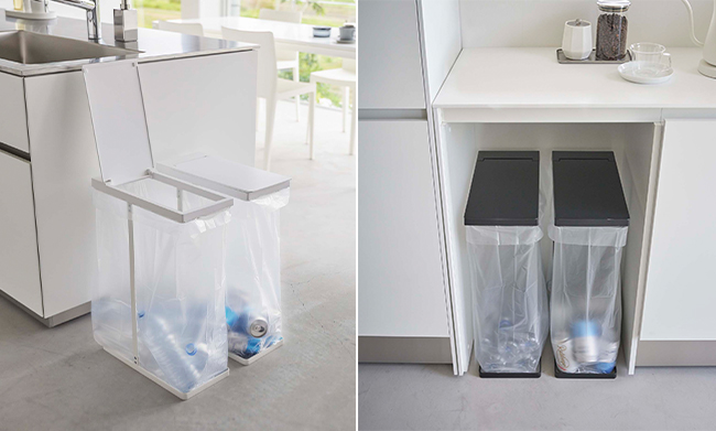 分別に便利な「スリム蓋付き分別ゴミ袋ホルダー タワー 45L」の2個組。