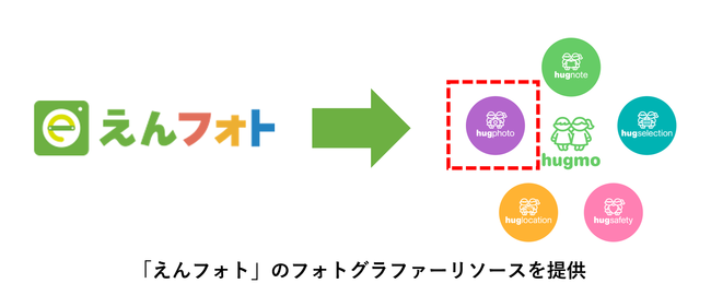 この度の学研教育みらいが提供する保育ICTプラットフォーム「hugmo(ハグモー)」との協業では、えんフォトが保有する全国2,000人以上のフォトグラファーネットワークを活かし、「hugmo(ハグモー)」のフォトサービスである「hugphoto(ハグフォト)」の利用を促進します。