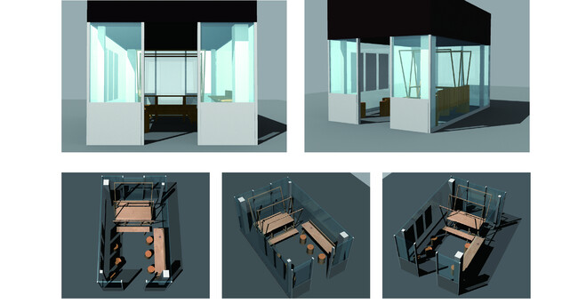 対面で使用できる屋台のようなWATAIや、発着する電車を眺めながら休憩ができるカウンターテーブル、ちょっとした休憩に腰かける丸太スツールと様々な用途に合わせてお使いいただくことができます。