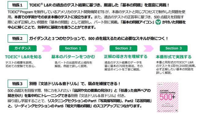 詳細はこちら( https://www.iibc-global.org/toeic/support/prep/lr_500plus/pr.html )でご覧いただけます。