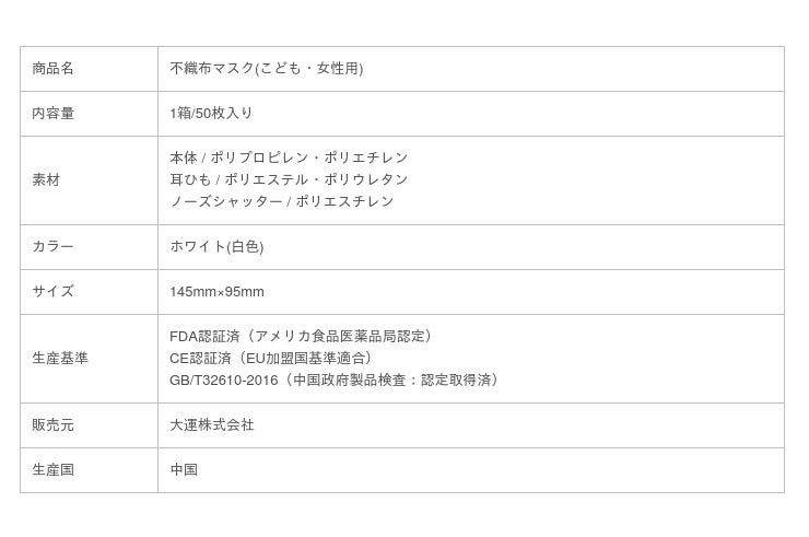 大運株式会社(本社所在地:埼玉県川口市 代表取締役:王 景国)は、三層構造の高品質不織布マスクを安価でご提供しております。これまで約1700万枚のご注文を頂きました。さらに多くのお客様にご使用して頂くため、1箱345円~の特別価格にて販売しております。敏感肌の方にもご使用頂けるよう内側の肌に触れる素材には、柔らかく肌に優しい素材を使用しています。高性能フィルターでウイルスや細菌の侵入を防ぎ、耳が痛くなりにくい平ゴムを採用した高品質マスクです。コロナ禍のなか、経済活動との両立に少しでも貢献できましたら、嬉しく思います。