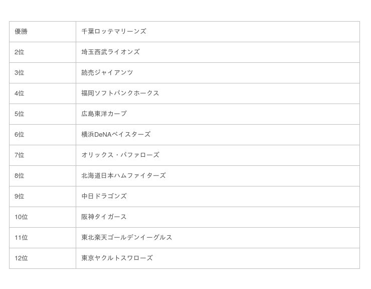 千葉ロッテマリーンズが2年連続2回目の優勝