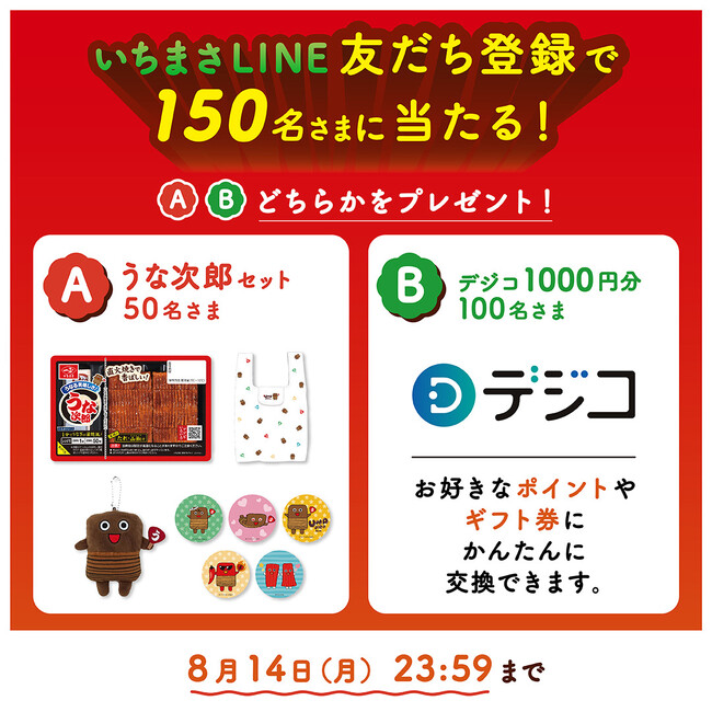 今年の夏は土用の丑の日は7月30日!いちまさ公式Twitter&LINEアカウントでキャンペーン同時開催中オリジナルうな次郎グッズや、お好きなポイントやギフト券に交換できるデジコ合計20万円分が当たる