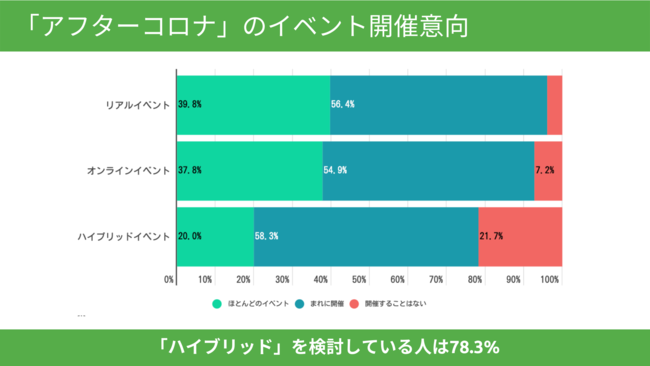 コロナ禍で数多くのイベントが大小問わずオンラインで開催されてきました。イベント・コミュニティのプラットフォームを運営するPeatix社の調査(有効回答数2129)によると、オンラインでのコミュニケーションに課題を感じつつも、「アフターコロナにおいてもオンラインでイベントを開催する」と回答した人は92.8%に上り、多くの人がオンラインでのイベント開催に前向きであることがわかっています。