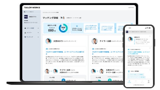 株式会社テイラーワークスは、「世界を変えるつながりを創る」というミッションのもと、金融機関やコワーキングスペース、新規事業開発部門のご担当者様など、イノベーションのためのビジネスコラボレーション創出が必要とされるクライアントに対し、AIを活用したBtoBマッチメイキングエンジン「 TAILOR WORKS 」を提供しています。「 TAILOR WORKS 」は、クライアントが保有する顧客のビジネスニーズとシーズを可視化し、最適な出会いの機会を創出します。これにより、顧客同士の共創を促進し、新たな価値創造とイノベーションの加速を実現できます。