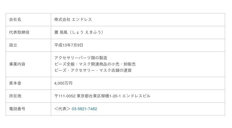 ビーズ・アクセサリーパーツを取り扱うショップ「PARTS CLUB(パーツクラブ)」を全国約90店舗運営する株式会社エンドレス(本社:東京都台東区、代表:代表取締役 蕭(しょう)易風(えきふう))は、マスク専門ブランド「MASK CLUB(マスククラブ)」を立ち上げ、2020年7月に「MASK CLUB」ECサイトをオープン、2021年1月にはなんばウォーク(大阪市中央区)に店舗をオープンしました。