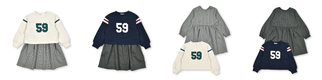 COLOR: オフトレーナー/クロチェックワンピ、ネイビートレーナー/ネイビーチェックワンピ