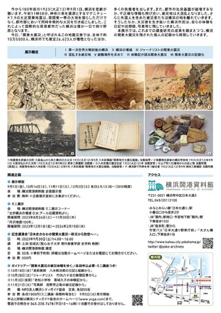 後援 朝日新聞横浜総局 神奈川新聞社 産経新聞社横浜総局 東京新聞横浜支局 毎日新聞社横浜支局 読売新聞横浜支局 NHK横浜放送局 tvk FMヨコハマ 神奈川県博物館協会神奈川震災100年プロジェクト