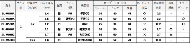 (1) ベルトとコンベヤ機械との擦過音を低減した低騒音仕様