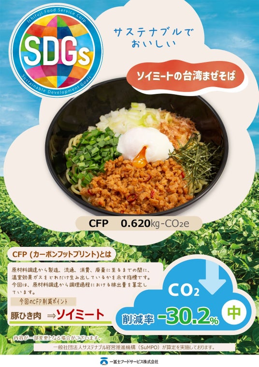一般社団法人サステナブル経営推進機構(所在地:東京都千代田区、代表理事:壁谷武久、以下「SuMPO(さんぽ)」)は、「SuMPO/レシピ de カーボンフットプリント」を用いて、総合フードサービス会社の一冨士フードサービス株式会社が10月1日から実施するイベントにおいて、提供される食事メニューにカーボンフットプリント*(以下、CFP)を表示するための算定を行いました。