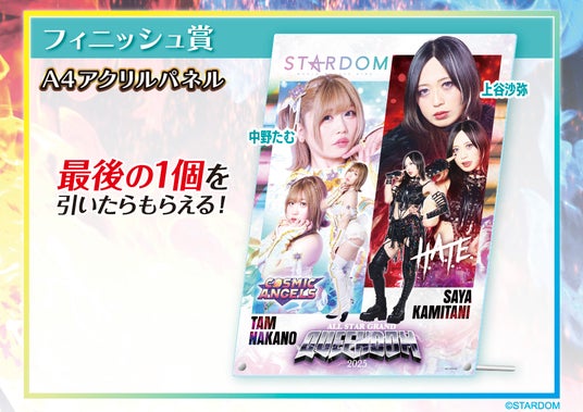 ラストワン購入の「フィニッシュ賞」は、中野たむと上谷沙弥をデザインしたオリジナルポスターA4アクリルパネルをプレゼント!