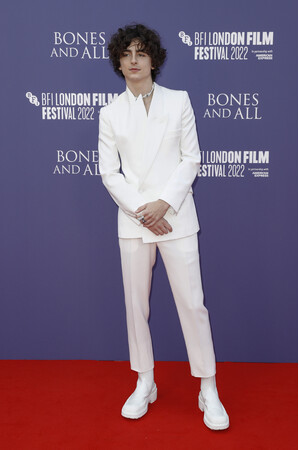 10月8日、ロンドンで開催された第66回BFIロンドン映画祭の「Bones and All」プレミアに、ティモシー・シャラメが、2023年春夏コレクションよりアイボリーのアシンメトリーのテーラードジャケットとシガレットトラウザー、ホワイトレザーのチェルシーブーツを着用して登場しました。
