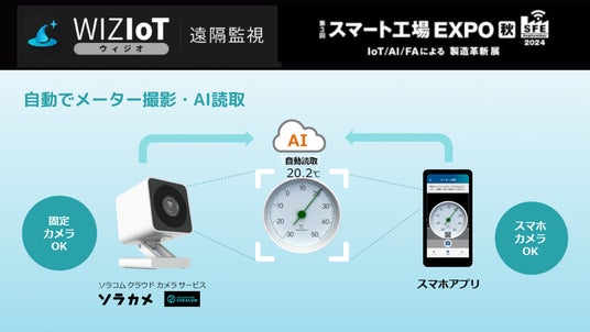 シャープの子会社である株式会社AIoTクラウド(本社:東京都江東区、代表取締役社長:松本 融)は、2024年9月4日(水)から6日(金)に幕張メッセ(千葉県千葉市)で開催されるRX Japan株式会社主催の「第3回スマート工場EXPO秋2024、IoT/AI/FAによる製造革新展」に出展します。株式会社ソラコムのブースにて、本年2月より提供を開始した『WIZIoT(ウィジオ)遠隔監視』サービス( https://iot.aiotcloud.co.jp/rms )を展示し、ソラコム社のクラウドカメラ「ソラカメ」※と連携した遠隔点検の実演や、工場設備の巡回・点検業務への活用事例を紹介します。