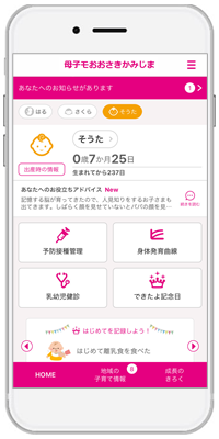 広島県大崎上島町に採用された『母子モおおさきかみじま』は、スマートフォン・タブレット端末・PCに対応したサービスで、妊産婦と子どもの健康データの記録・管理や予防接種のスケジュール管理、出産・育児に関するアドバイスの提供、離れた地域に住む祖父母など家族との共有機能や、町が配信する地域の情報をお知らせするなど、育児や仕事に忙しい母親や父親を助けてくれる便利な機能が充実しています。