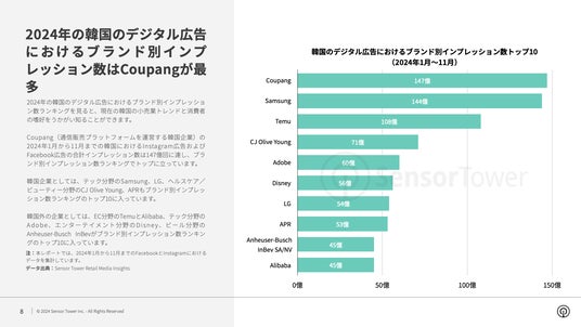 インプレッション数はCoupangがトップでSamsungが2位、韓国外企業も多数トップ10入り