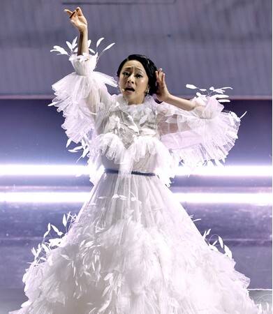 レッドカーペットとパフォーマンスで2023年春夏オートクチュールコレクション ‘ヴァレンティノ ル クラブ クチュール’ のドレスを着用