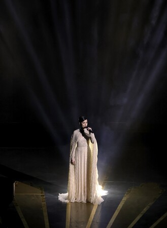 パフォーマンスで2023年フォールコレクションのドレスを着用