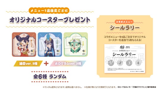 コラボメニューを4品ご注文でオリジナルコースターを追加で1枚もらえるシールラリーを開催いたします。