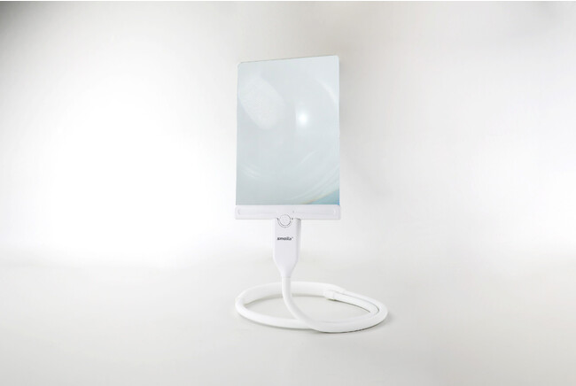 スモリアフリー3は、首にかけることで両手を自由に使える新型の拡大鏡です。この製品は、約1.8倍の拡大率を持つ、ゆがみの少ないレンズが特徴です。 球面レンズを使用しないため、歪みなく対象物をくっきりと拡大し、細かい文字もはっきりと読むことができます。老眼鏡と併用できるため、老眼鏡による日常的な遠近距離の視界と、それよりも更に近い距離や手元の小さい物を見るための視界をハンズフリーで簡単に得ることができます。そして、LEDライトが搭載されているため、暗い場所でも明るく見ることが可能です。また、フレームレスのデザインで、視界の妨げを最小限に抑え、軽量設計で長時間の使用でも快適です。