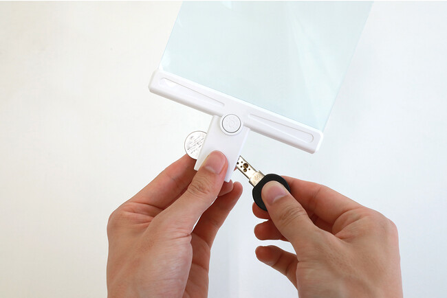 使用するコイン電池収納部には、電池交換のストレスをなくすスライド式の独自技術を採用しています。